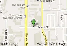 Take left turn at 94 Ave S.E and left into Macleod Trail Plaza. We are located on the immediate left side of the plaza entrance.